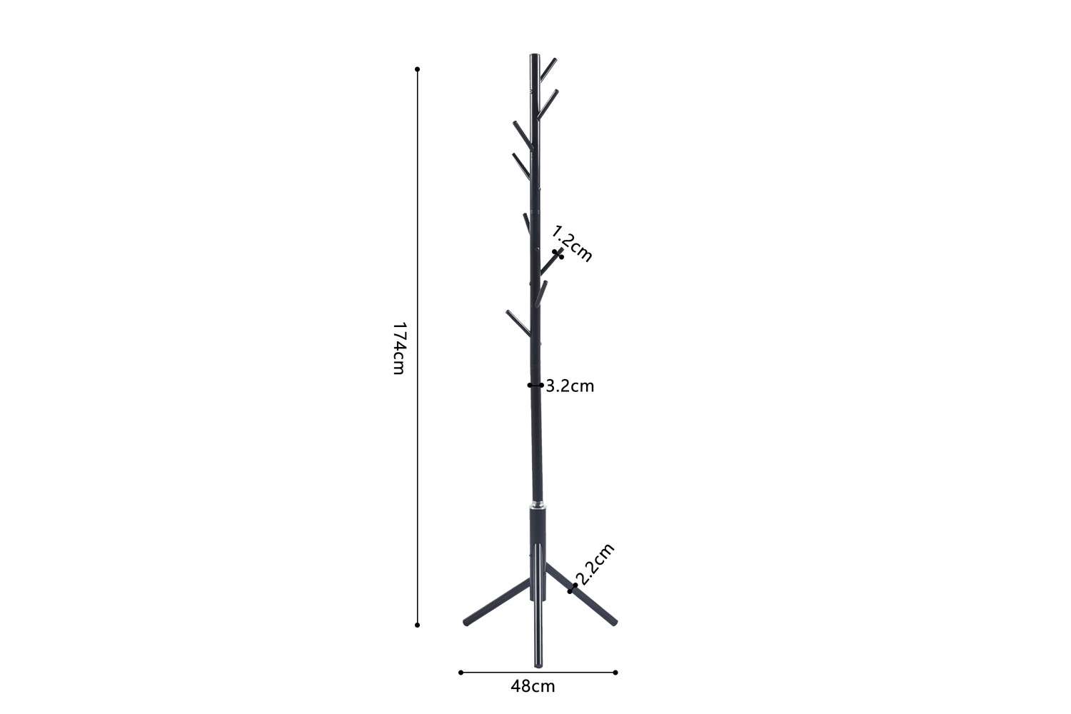 La structure, les crochets et le pied tripode sont en tubes d’acier, assurant robustesse et capacité de charge.